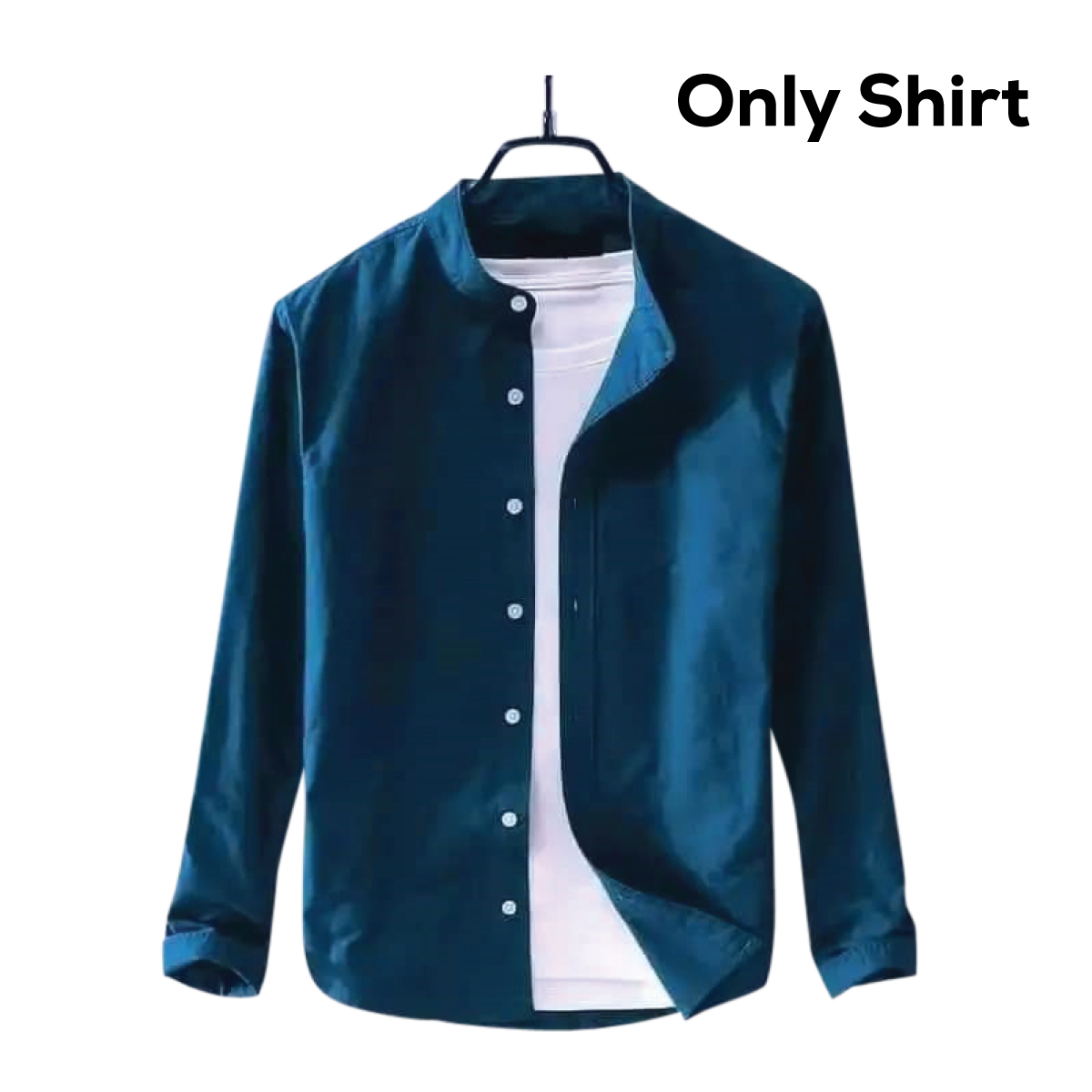 Be the first to review “Men’s Solid Colour Ban color Shirt (petrol)”